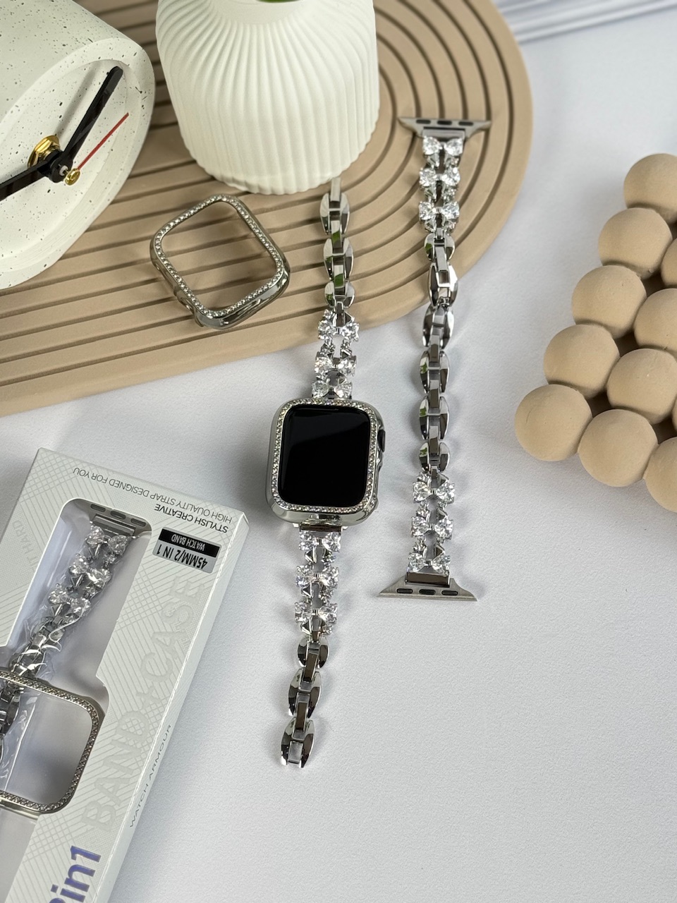 بند اپل واچ فلزی پاپیون کریستالی + گارد نگین دار (کدw5047)